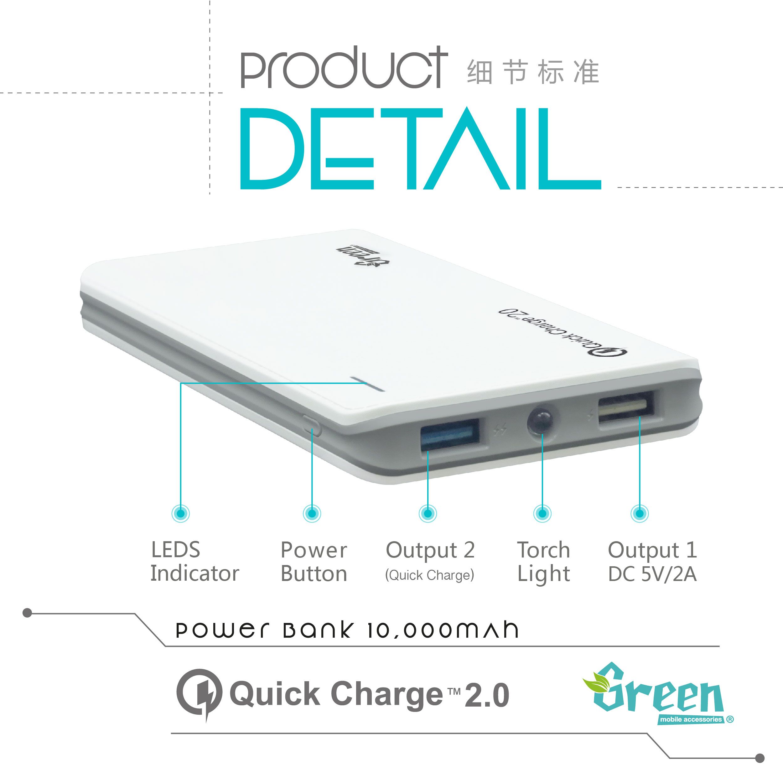 Quick Charge 2.0 10,000mAh 2 USB Port | Power Bank GR-PBQC100