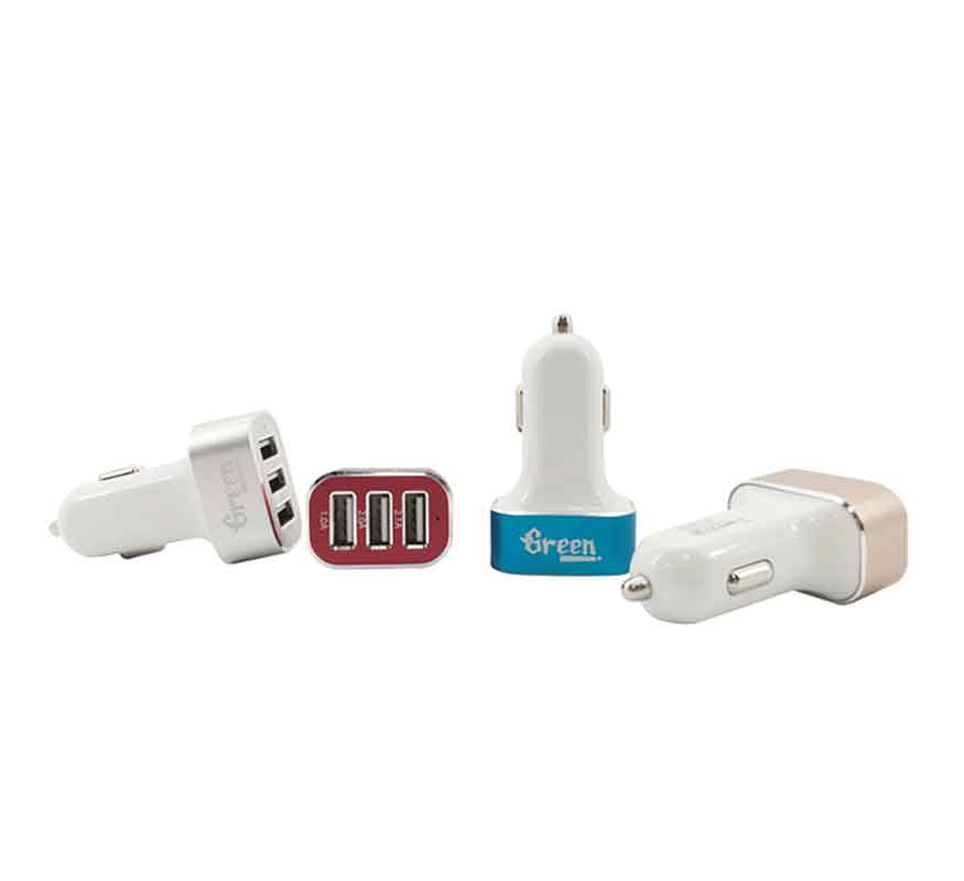 Model : GR-CC-510 | Input : DC 12-18V | Output : 5V / 2.1A+2A+1A | Size : 35*24*60mm | Material : ABS+PC+Aluminum | White-Gold / White-Silver / White-Red / White-Blue | Warranty : 12 Months